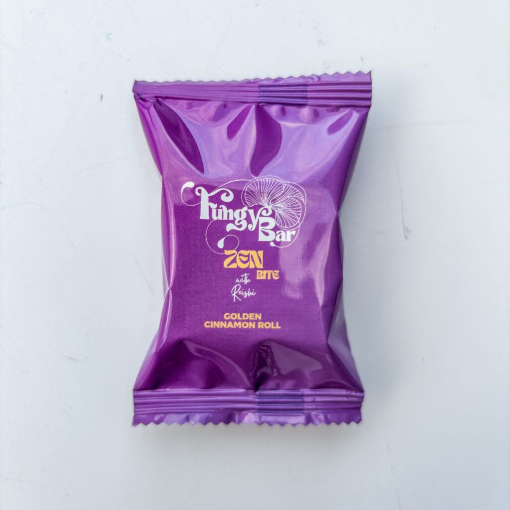 Baren har en eksklusiv smak av golden cinnamon roll med sjokoladebiter. Den er laget av rene, økologiske råvarer som er skånsomt behandlet, og inneholder i tillegg et dobbelekstrahert pulver av Reishi-sopp (Ganoderma lucidum). Reishi har lange tradisjoner fra tradisjonell kinesisk medisin, hvor den har blitt høyt verdsatt som naturmedisin i over 3000 år.